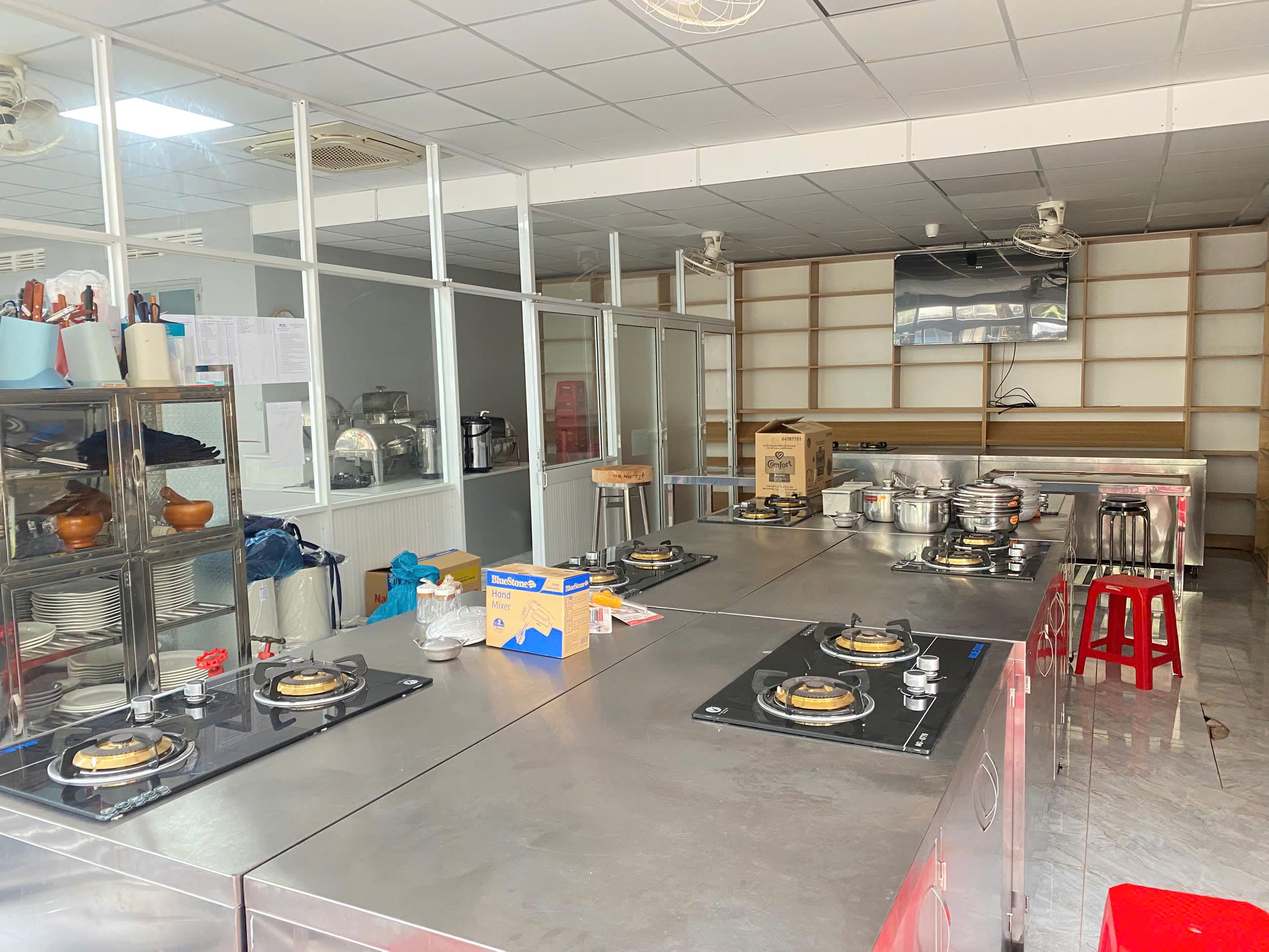 ✅ Phòng bếp thực hành ngành Kỹ thuật chế biến món ăn: Không gian bếp công nghiệp hiện đại, đảm bảo an toàn vệ sinh thực phẩm, phục vụ tốt quá trình rèn luyện kỹ năng nấu ăn.